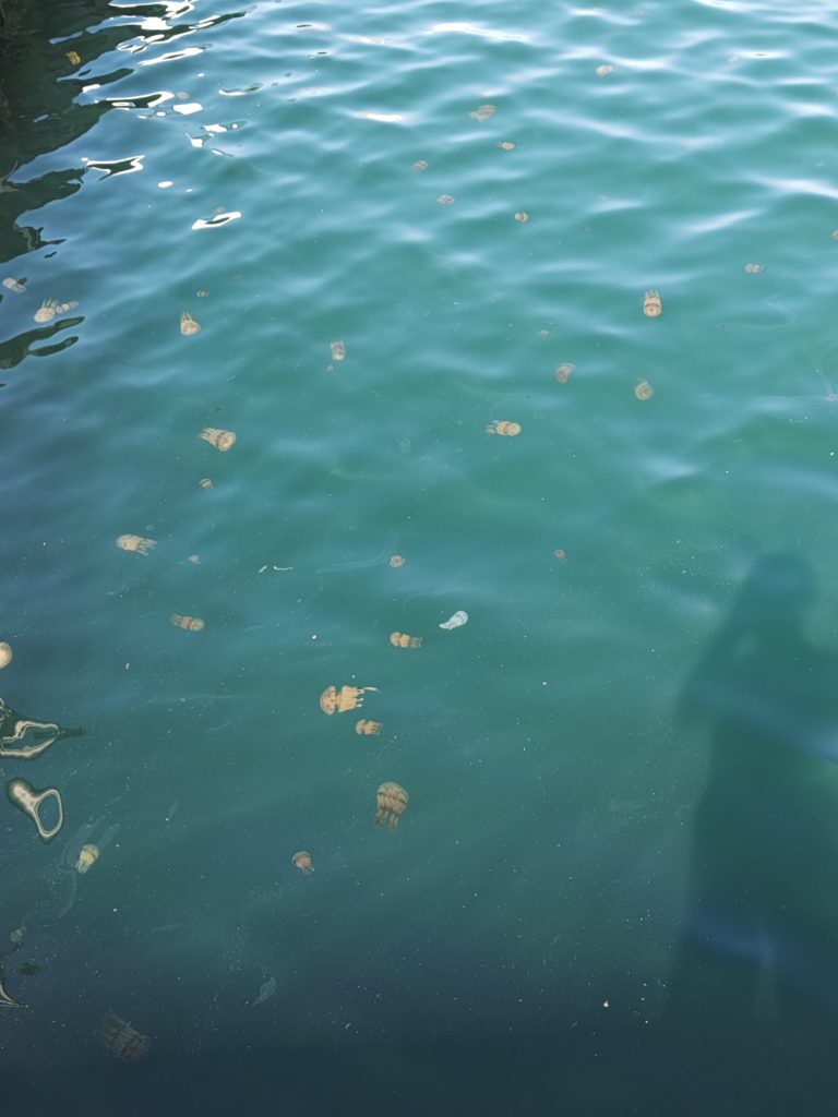 港に着くと、たくさんのタコクラゲがいるではないですか!