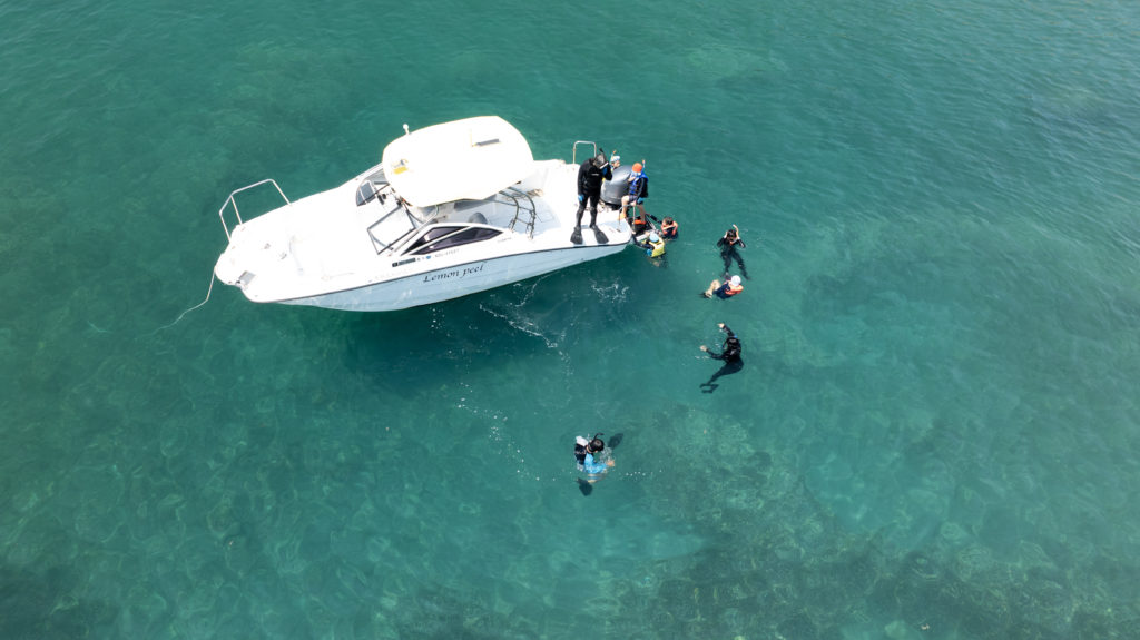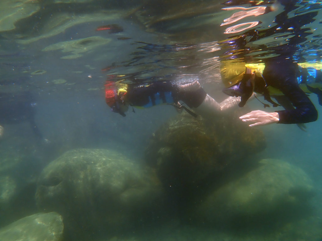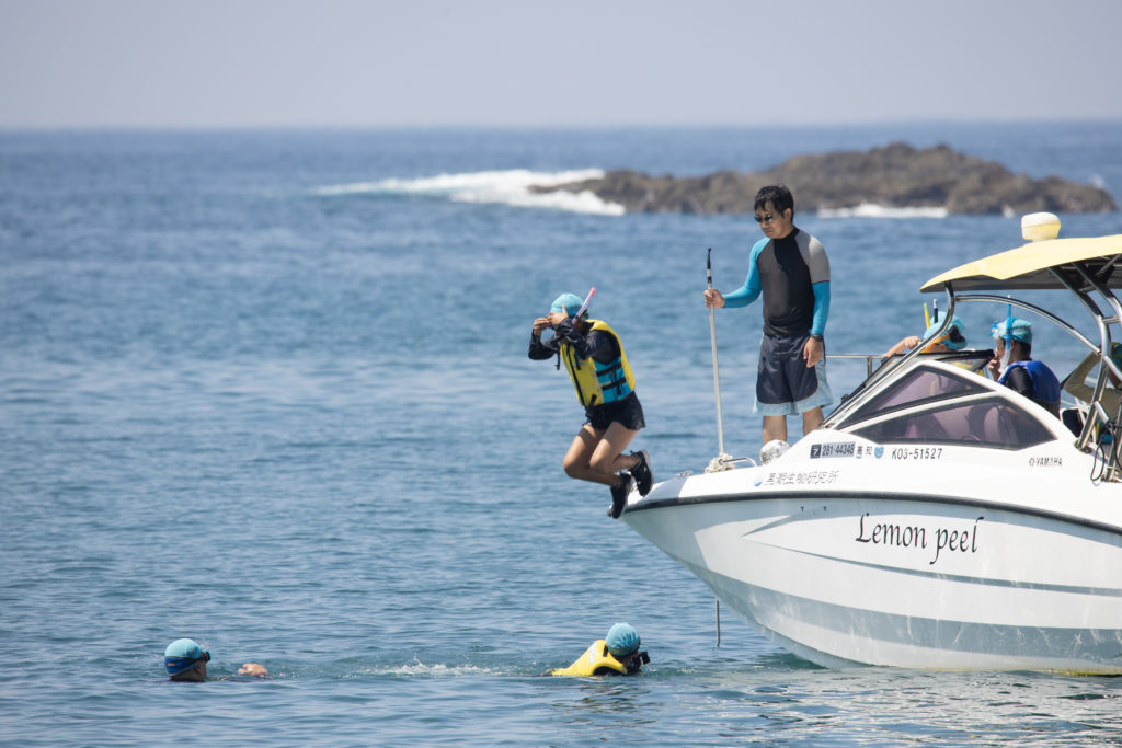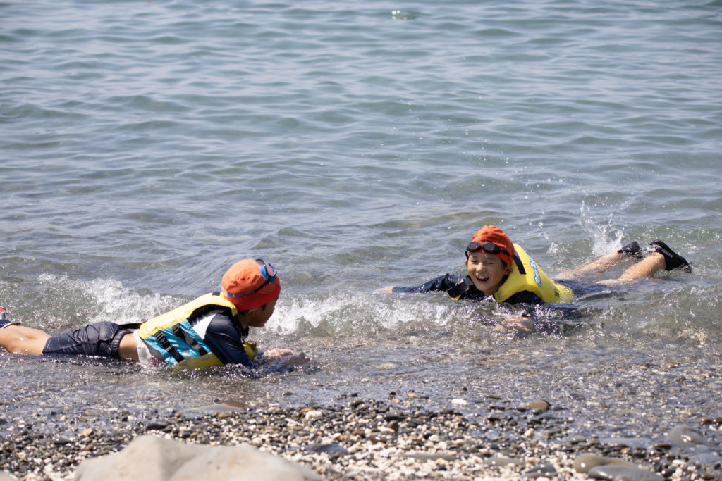 午前中は研究所の前で海水浴を行いました。