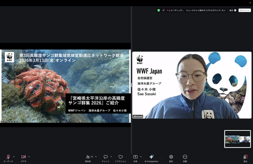 活動紹介では、WWFジャパン 海洋水産グループ サンゴ礁生態系保全担当 佐々木小枝さんによる