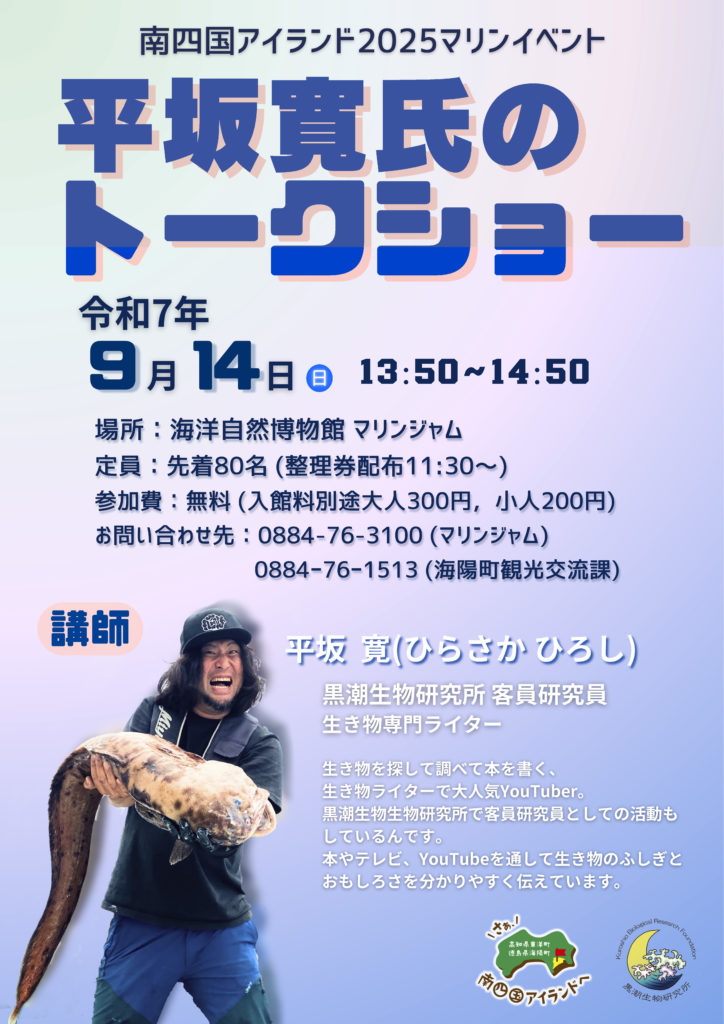 海洋自然博物館 マリンジャムにて行われるトークショーの詳細についてお知らせします。