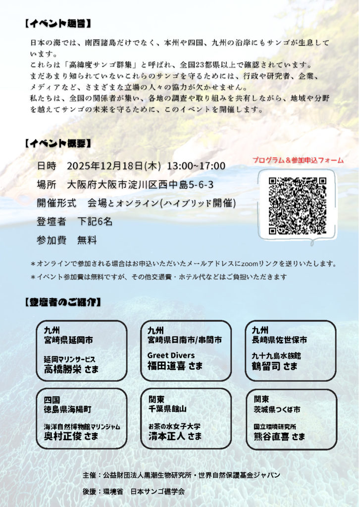 地域や分野を越えてサンゴの未来を守るために、このイベントを開催します。