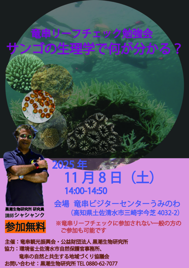 こちらの勉強会は竜串リーフチェックに参加されない一般の方のご参加も可能です。