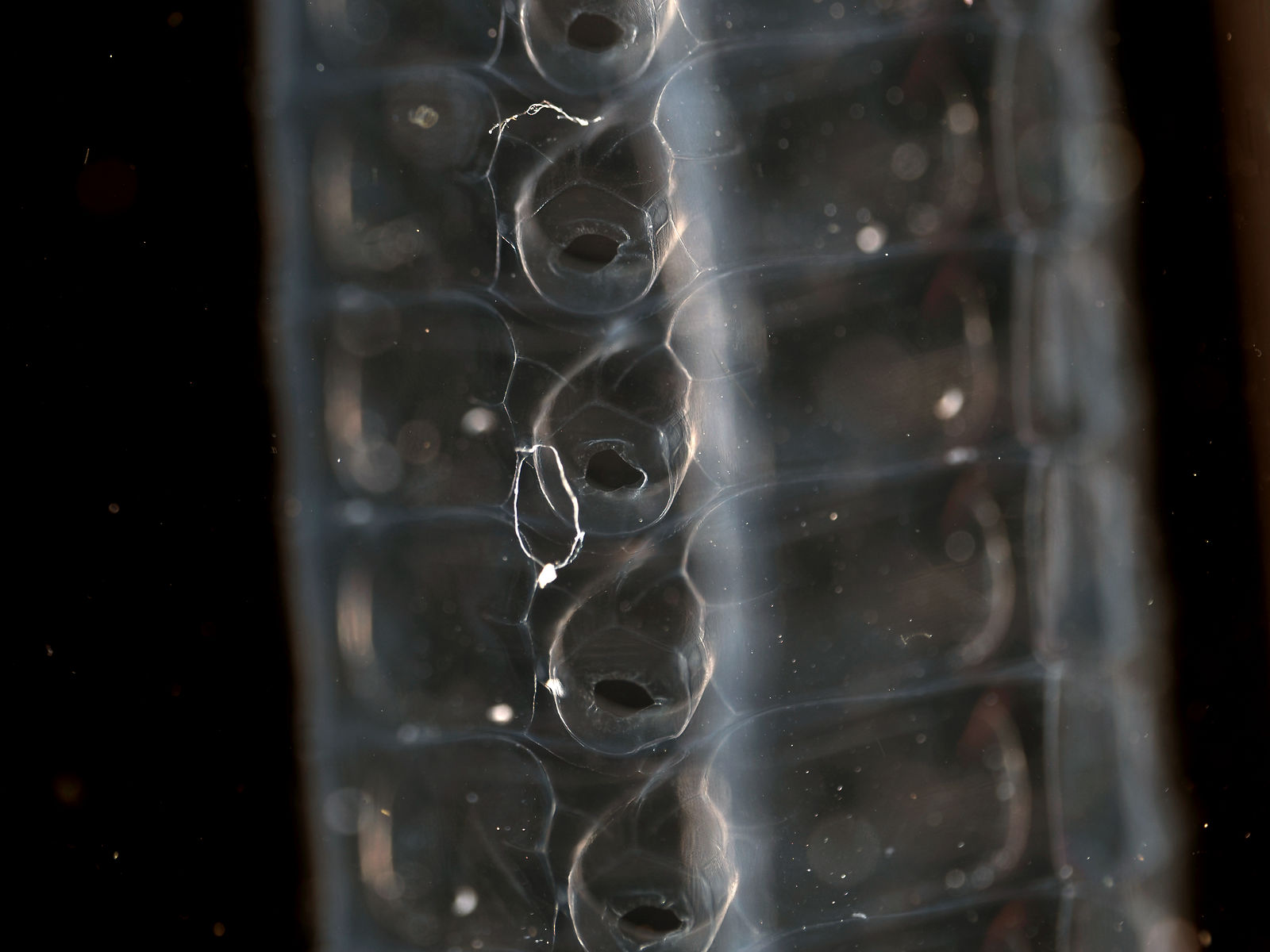ソーセージのような細長い形のクラゲ。 インドで身分の高い人がつける装身具「瓔珞」に似ていることからこの名がある。普段は外洋にすんでいるが、強風により接岸することがある。強い毒を持っており、刺されると痛い。刺傷経験のある所長いわく、「アンドンクラゲを10としたら6か7のくらいの痛さ」とのことだったので結構、痛かったはず。きれいに固定することが極めて困難なクラゲで、ホルマリンを入れると泳鐘や栄養部がバラバラになってしまう。