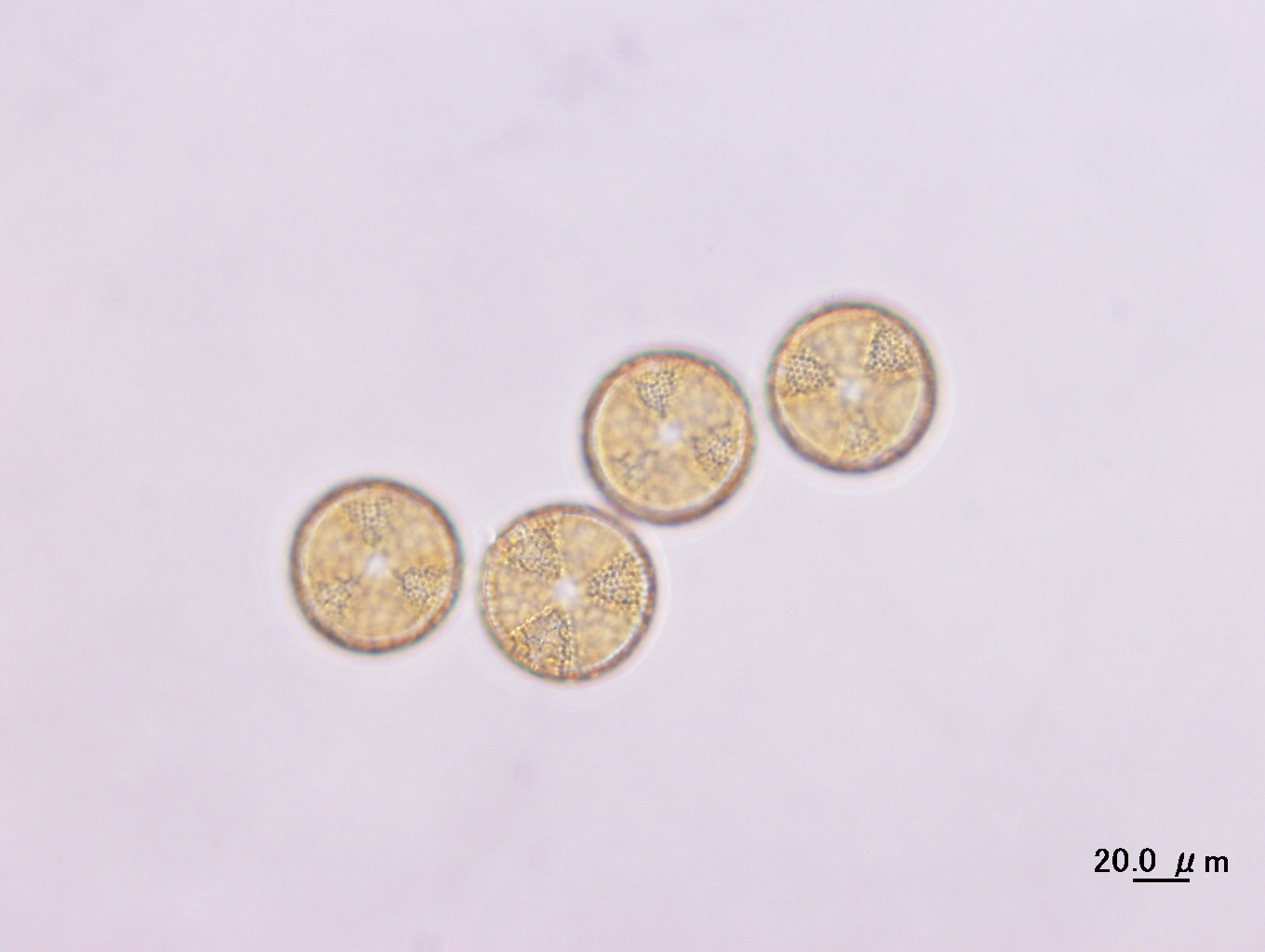 細胞は単体で出現することが多いが、写真のようにgirdle (帯側 : 殻横側) の一部で繋がっている群体もみられる。