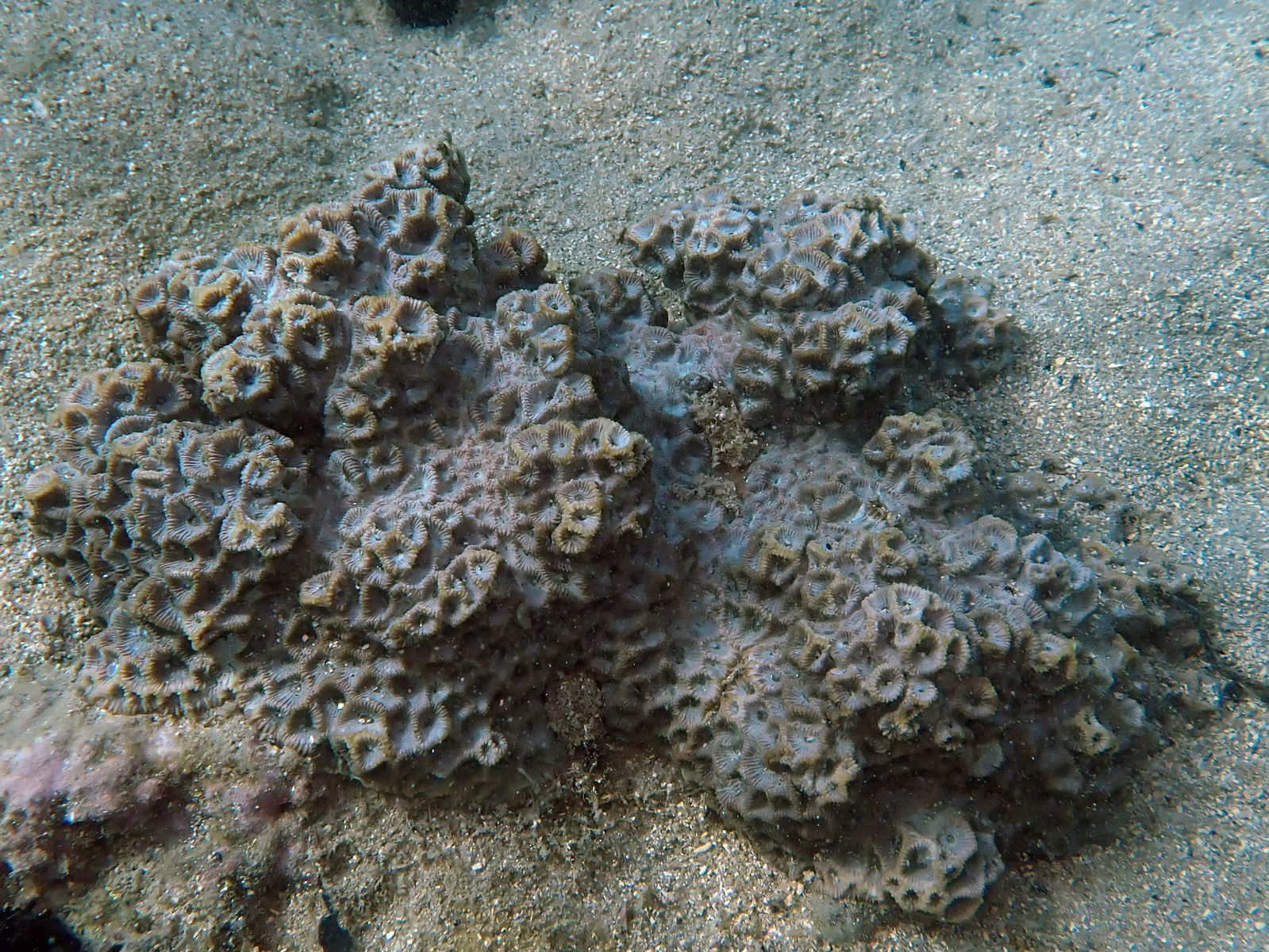 群体形は塊状で、サンゴ個体が和名の通り五角形のものが多いので、キクメイシ仲間ではは見分けやすい種です。浅場から深場までいろいろな環境に出てくるため、レア度は2としました。