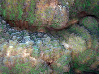 大型になるサンゴで、脳みそのような形をしているが、脳のしわしわなど全体的にノウサンゴの仲間と比べると圧倒的に大きく、骨のトゲトゲも大きくて目立つ。色は赤、緑、茶褐色などいろいろ。群体数は多くないが、よく見るサンゴ。