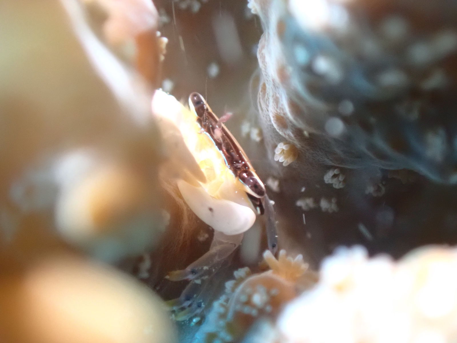 節足動物門 Arthropoda ▶ 軟甲綱 Malacostraca ▶ 十脚目 Decapoda ▶ ヒメサンゴガニ科 Tetraliidae ▶ ヒメサンゴガニ属 Tetralia ▶ クロエリサンゴガニ Tetralia nigrolineata